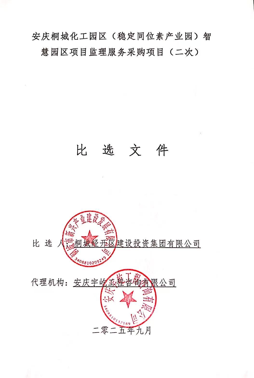 1.项目名称:安庆桐城化工园区(稳定同位素产业园)智慧园区项目监理服务采购项目(二次)