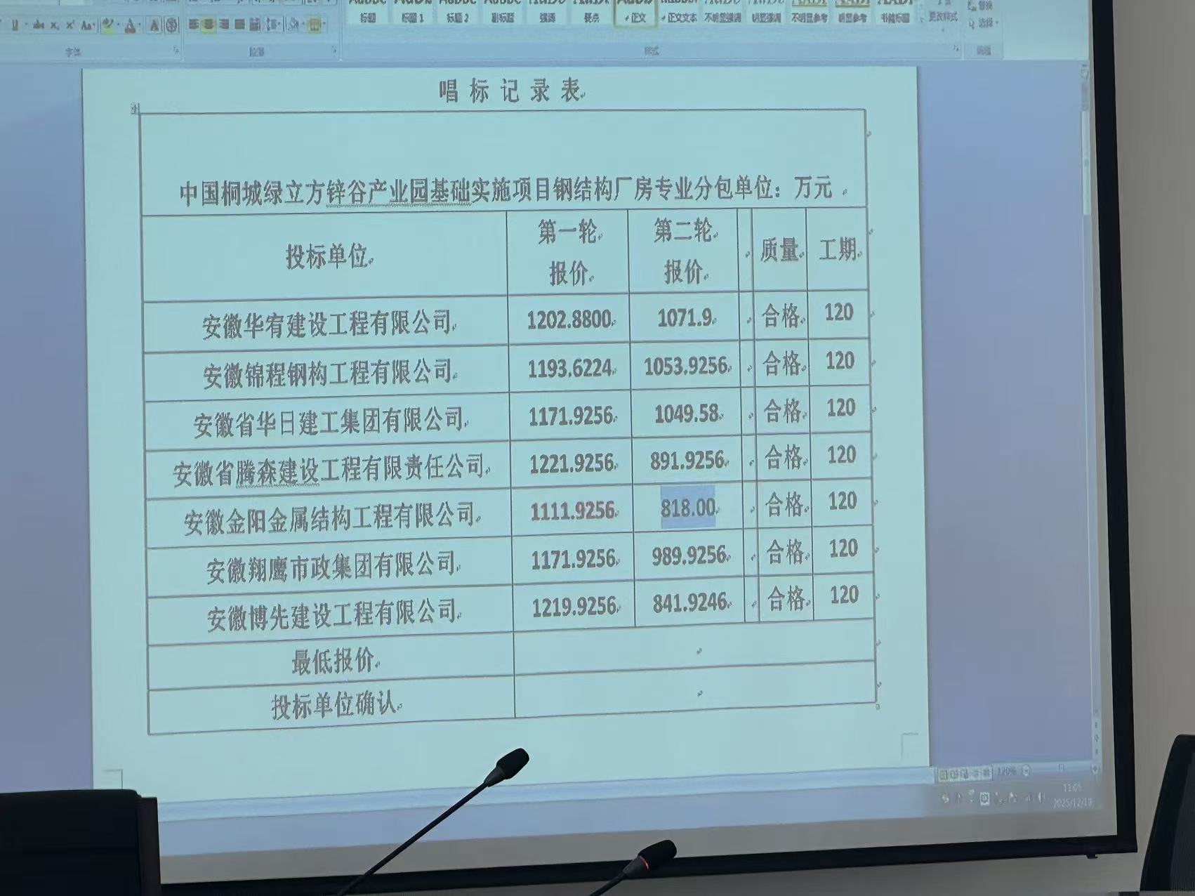 六、中标候选人:安徽金阳金属结构工程有限公司